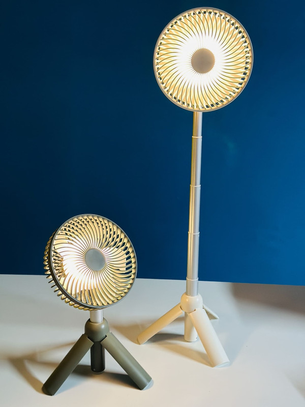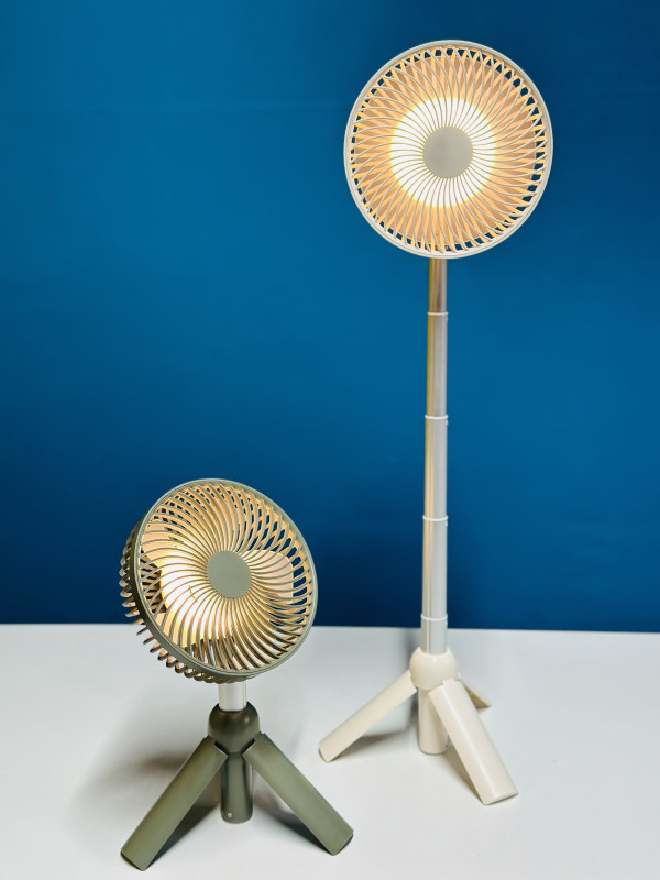 The AZEADA PD-F27 Rechargeable Fan with Tripod Stand is a portable and versatile fan that can be used in a variety of settings. It has a 4000mAh battery that provides up to 10 hours of run time on a single charge, making it ideal for use at home, at the office, or on the go. The fan also has a tripod stand that allows it to be placed on a table or desk, or it can be hung from a hook or ceiling for hands-free operation. The fan has three-speed settings and a 360-degree head that can be tilted to direct the airflow in any direction. The front grill is removable for easy cleaning, and the fan is also USB rechargeable for convenient charging.