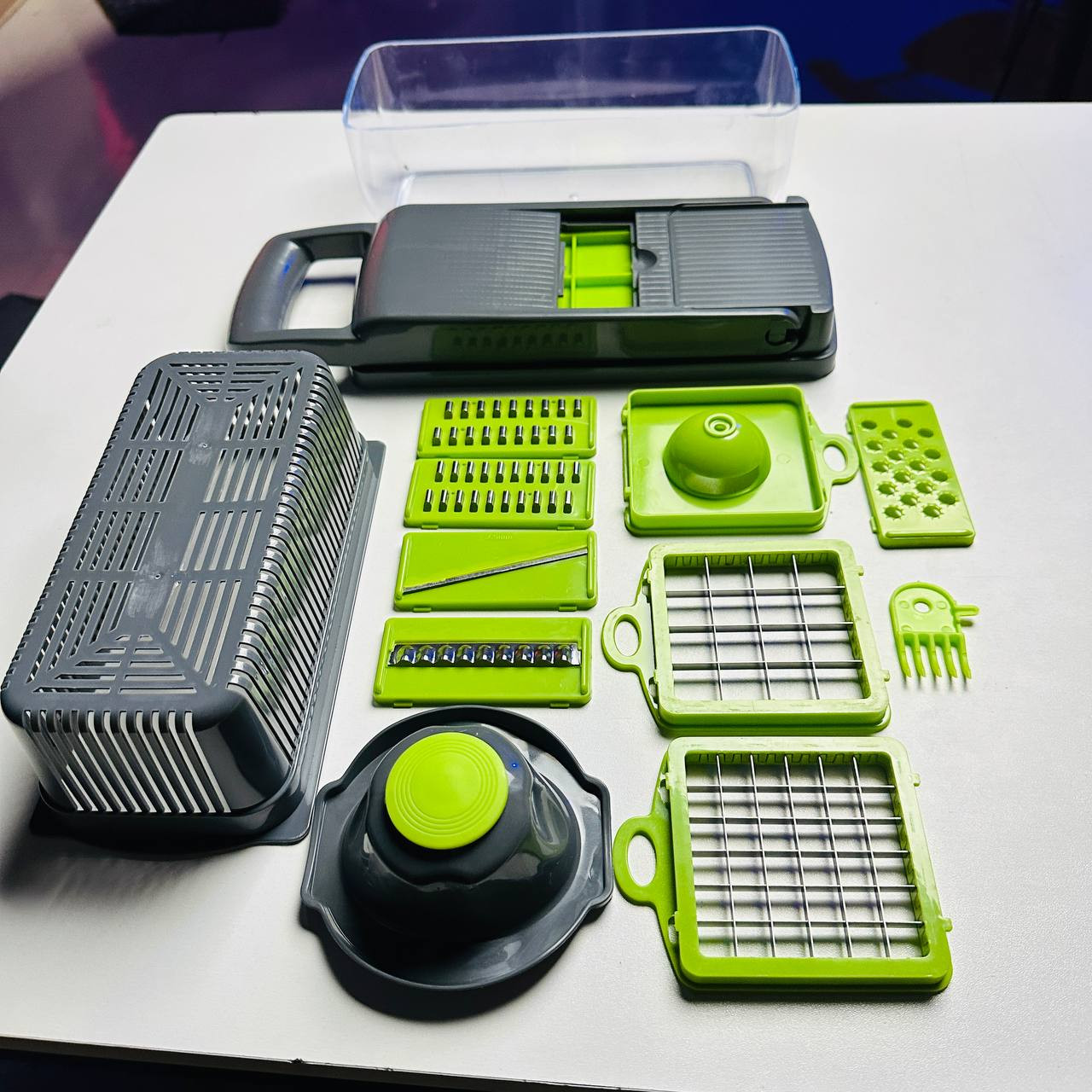 14-in-1 Functionality: The slicer comes with 14 different attachments, enabling you to slice, dice, chop, julienne, grate, and even spiralize fruits and vegetables effortlessly.