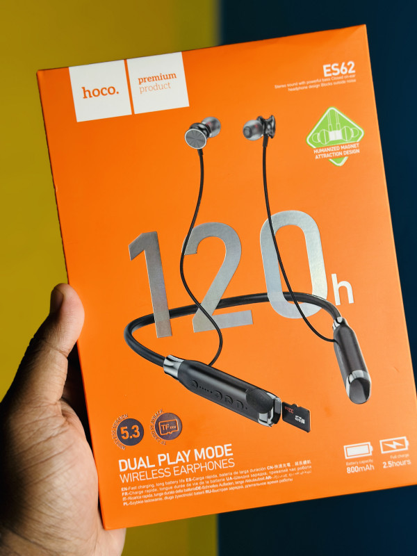 The Hoco ES62 Pretty Neckband is a pair of Bluetooth neckband earphones that are known for their long battery life, comfortable fit, and good sound quality.