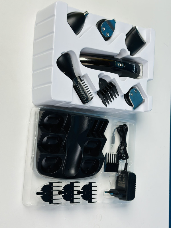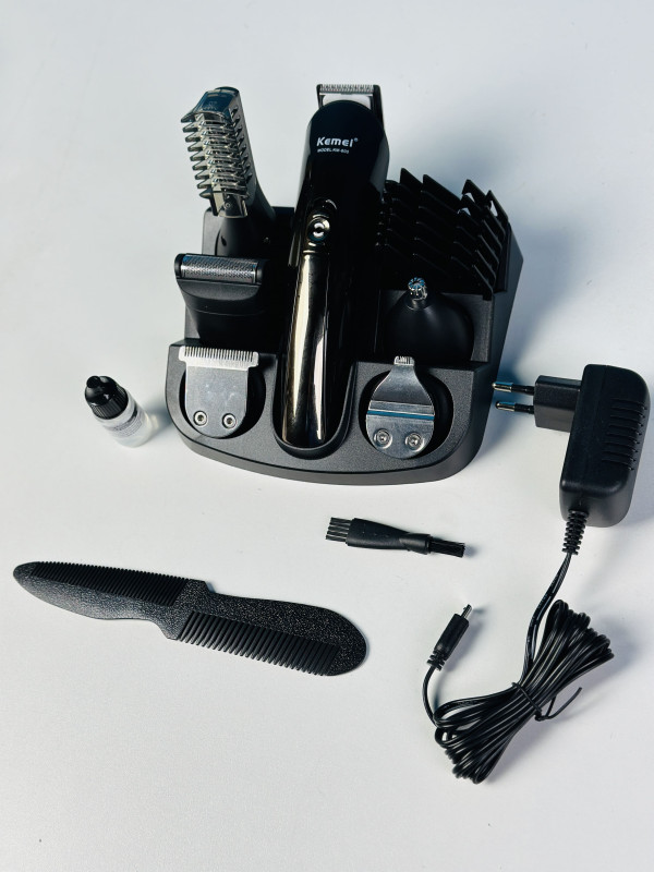 The Kemei KM-600 Trimmer is 100% new and high quality! It has 6 different cutters, to cut different hair on your face. It is available for rechargeable use. The adjustable clipping comb is applicable for clipping hair of different lengths. 4 saw length of 3–6–9 – 12mm, just select the length if you want. It adopts the high-hard blades. Super nice design with a cutting length control wheel fit for both babies, children, and adults cut hair as comb hair is, a fast, easy, and safe big gift for kids, parents, and friends. High-speed motor. Super professional blade. Special grooming kit for men. The red light is on while charging. The green light is on that the machine is fully charged.
