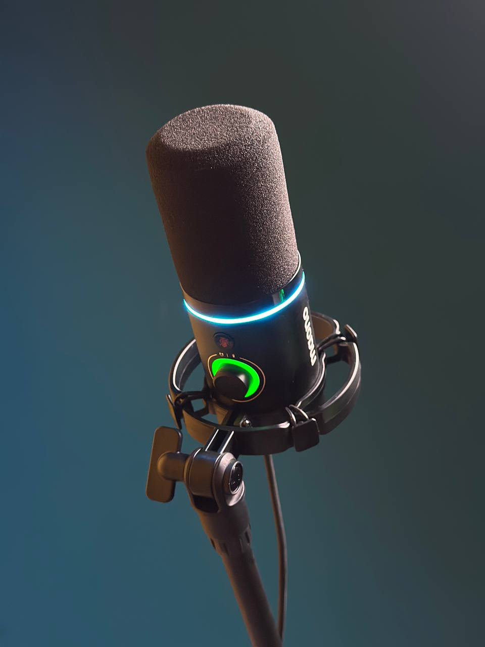 - 2-in-1 SMART KNOB: Everything in your control, the podcast microphone have a 2-in-1 smart knob to adjust mic gain, headphone volume, one click mute key with LED indicator help you instantly mute the mic, and real-time monitoring of 3.5 mm headphone jack monitor output voice as desired by recording professionals.