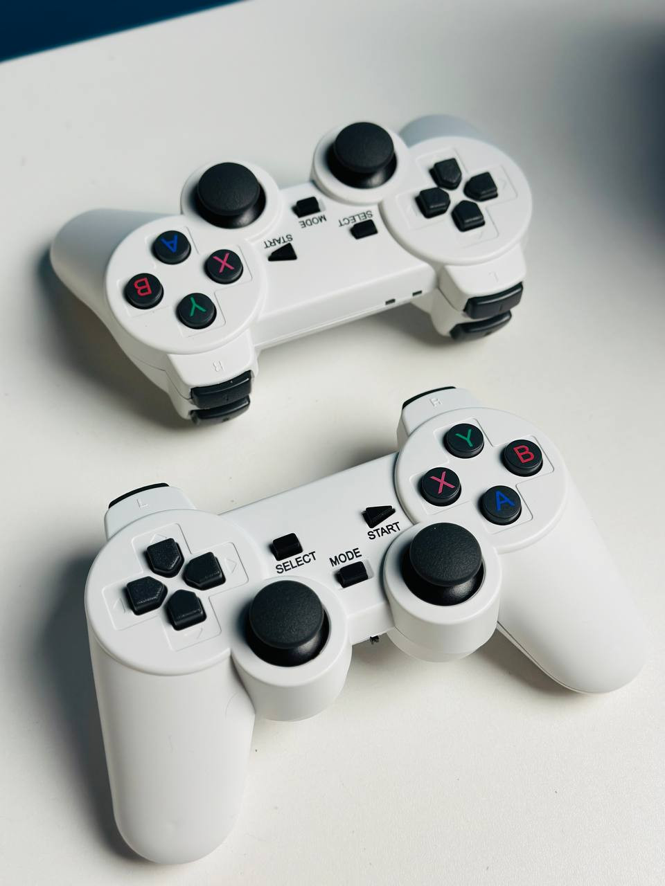Mini Video Game Console Stick: Comes with a 128GB TF card preinstalled with over 35,000 popular retro arcade games and many game emulators. Supports more than 10 game platform simulators, includes dual handles, and supports two-player cooperative games.