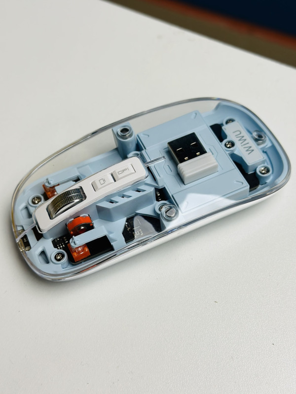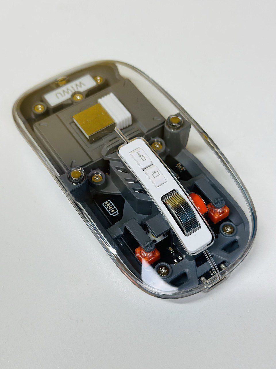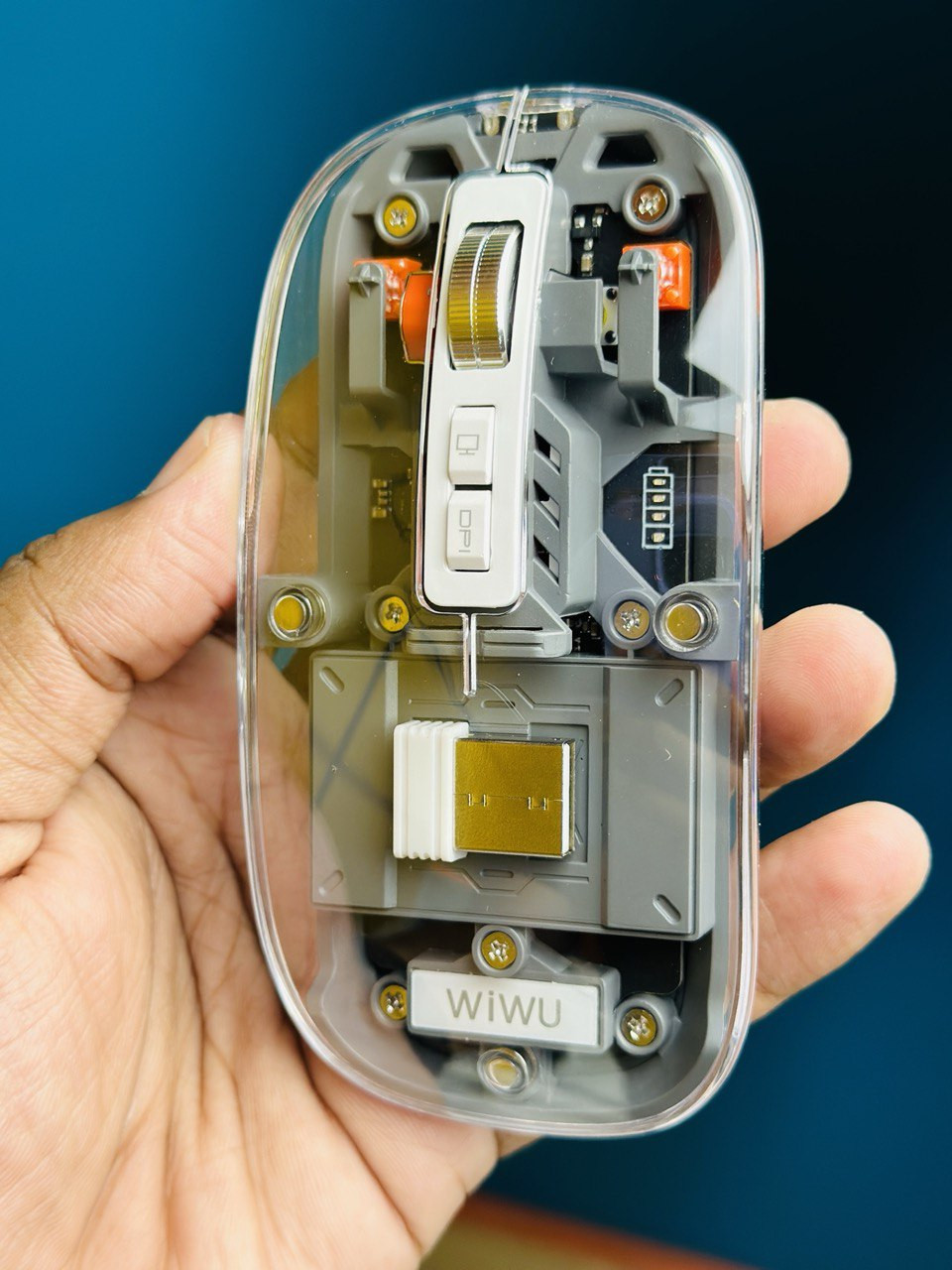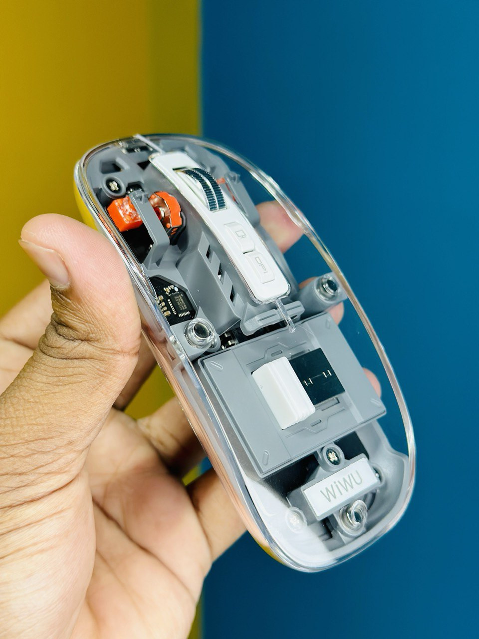The WIWU Crystal Transparent Wireless Mouse 2.4G connects to your computer using a 2.4GHz wireless connection, which provides a reliable and stable connection. It also has a built-in rechargeable battery, which provides up to 12 months of battery life on a single charge.